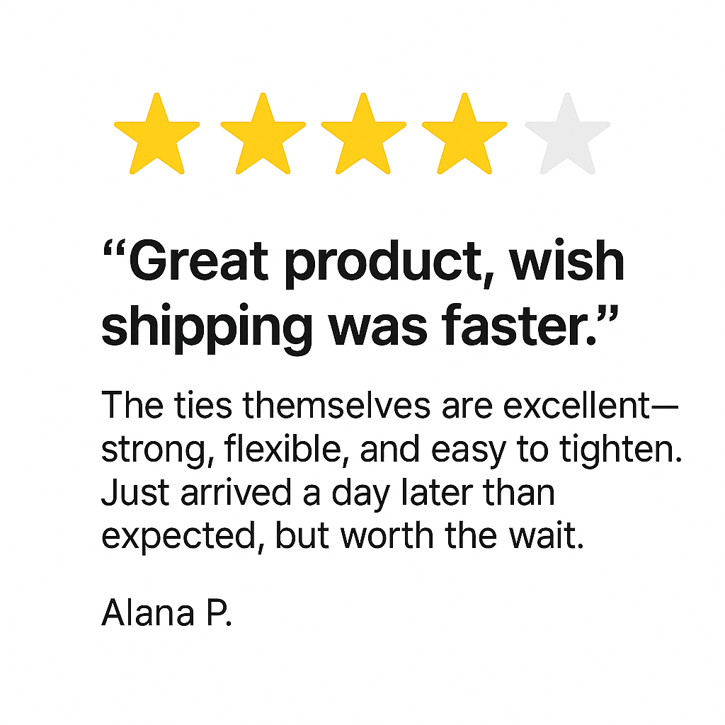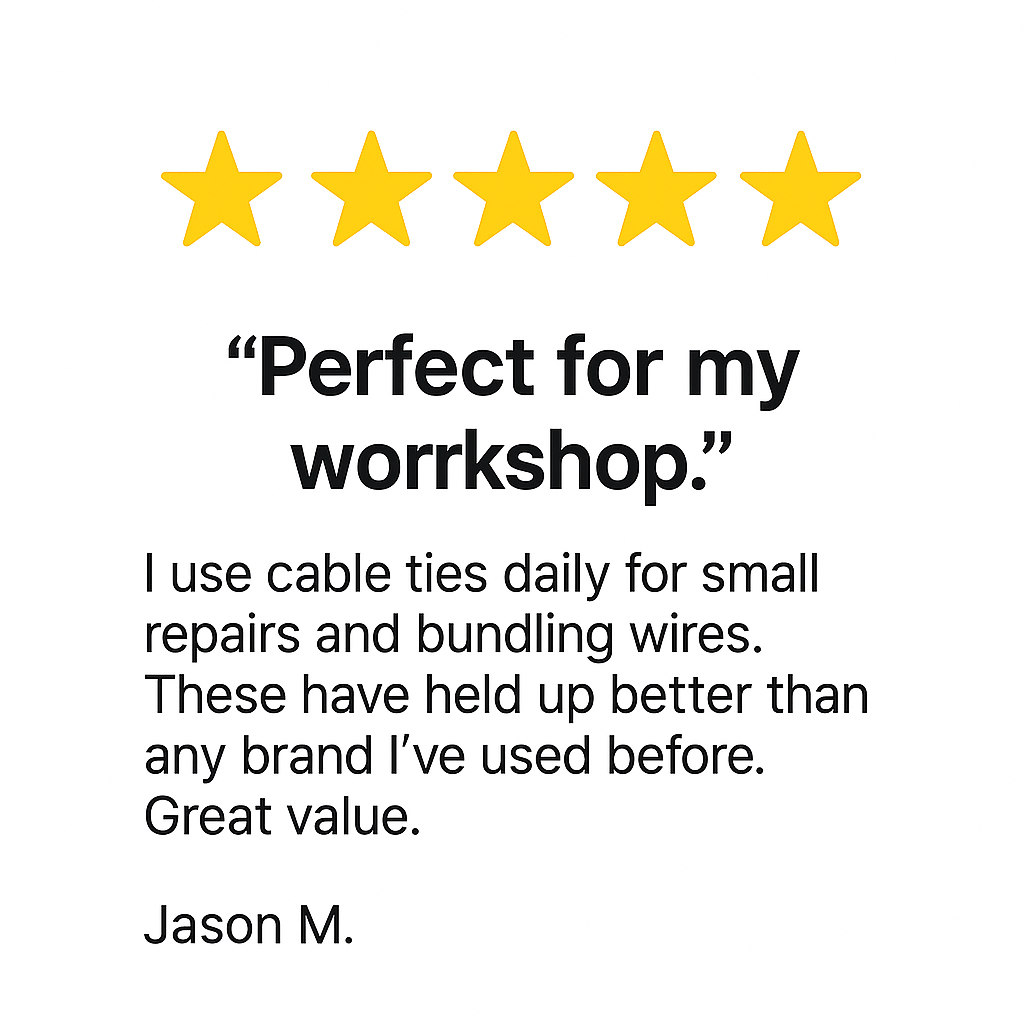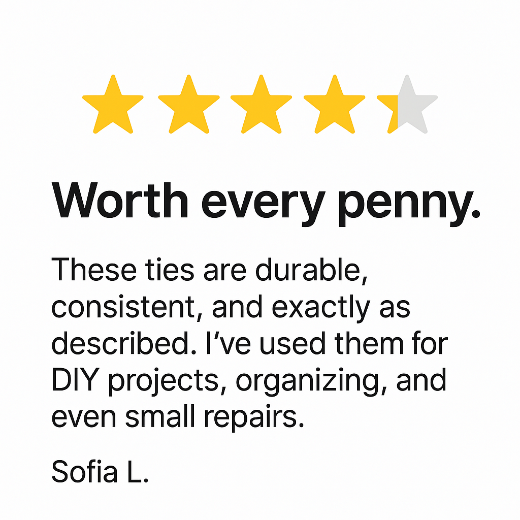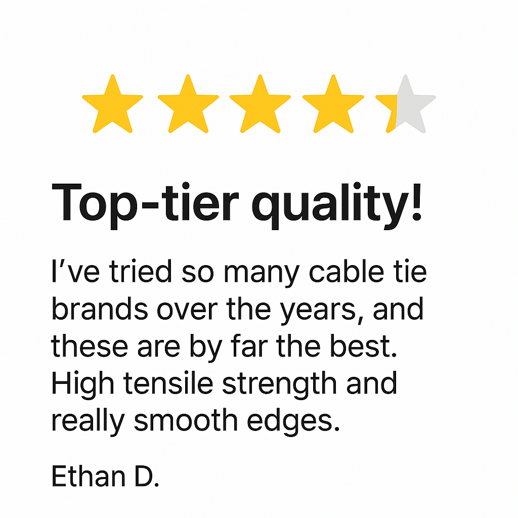 We believe that true quality goes hand in hand with great customer care. That’s why every product we make and every order we fulfill is backed by our promise of performance, precision, and satisfaction. Whether you’re an industry professional or a creative DIYer, our goal is simple—to deliver zip ties that do more, last longer, and help you create with confidence.