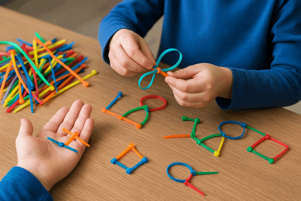 • Fine motor skills – Connecting and tightening cable ties strengthens small hand muscles.
